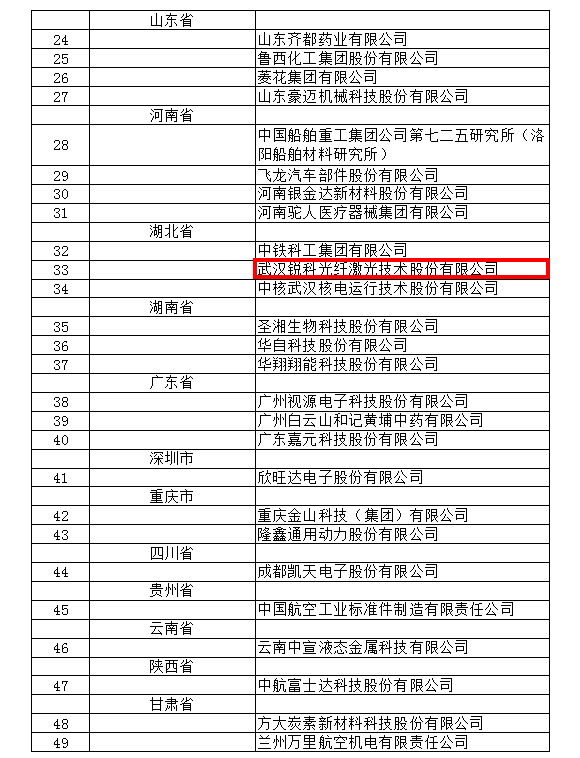 锐科激光在光纤激光技术领域具有明显领先优势,通过自主研发、技术创新和产业并购,目前已掌握包括泵浦源、特种光纤、光纤耦合器、传输光缆、功率合束器、光纤光栅等激光器核心器件及材料的关键技术和大规模生产能力。锐科激光的此次上榜,是对公司技术创新能力、研发能力的肯定,是公司综合实力的体现。